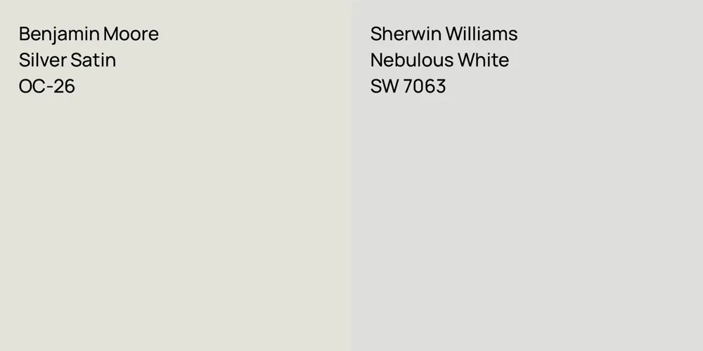 The colors, each unique in their hue and saturation, embody their own individual beauty and value. It's important to note that the colors have different hues. Benjamin Moore OC-26 leans towards hues, while Sherwin Williams SW 7063 is .
