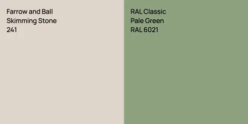 We understand how important it is to remember the details. The colors, each with their own unique beauty and value, are truly special. It's important to note that the colors have different hues. Farrow and Ball 241 leans towards hues, while Benjamin Moore HC-147 is .