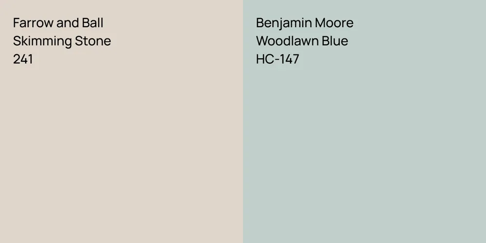 Despite their differences, both colors share a similar value, Farrow and Ball 241 radiating a lighter essence compared to HC-147.