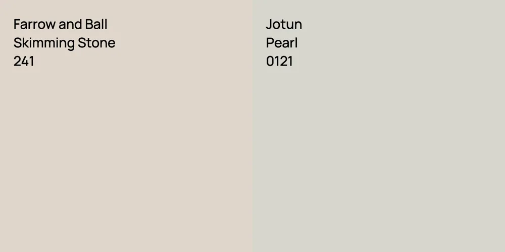 The colors, each unique in their hue and saturation, embody their own individual beauty and value. It's important to note that the colors have different hues. Farrow and Ball 241 leans towards hues, while Jotun 0121 is .