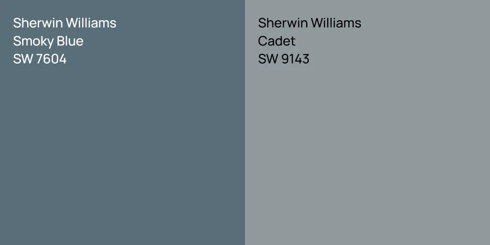 Sherwin Williams SW 7604 and SW 9143 differ significantly in saturation. Sherwin Williams SW 7604 is more saturated.