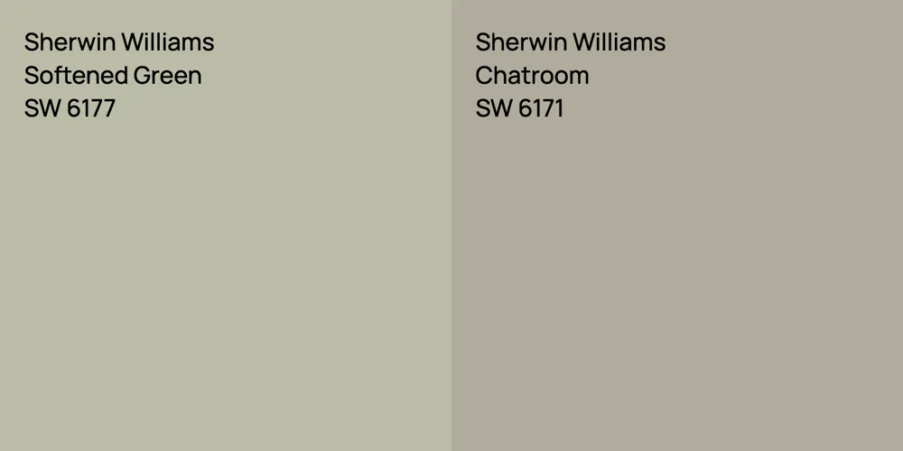 Despite their differences, both colors share a similar value, Sherwin Williams SW 6177 radiating a lighter essence compared to SW 6171.