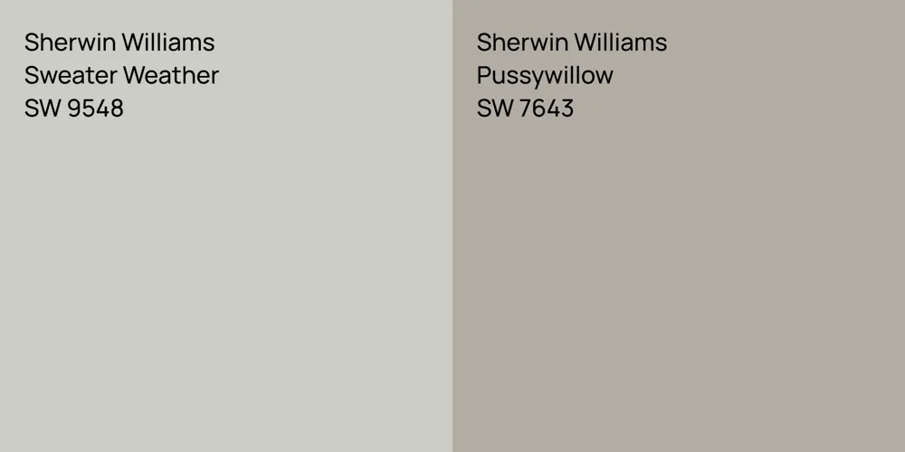 The colors, each unique in their hue and saturation, embody their own individual beauty and value. It's important to note that the colors have different hues. Sherwin Williams SW 9548 leans towards hues, while Sherwin Williams SW 7643 is .