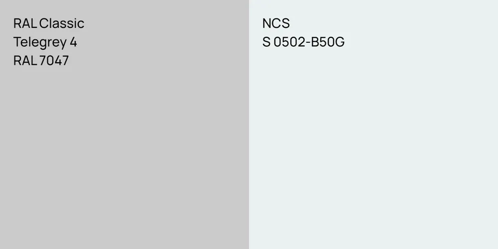 The colors, each unique in their hue and saturation, embody their own individual beauty and value. It's important to note that the colors have different hues. RAL Classic RAL 7047 leans towards hues, while NCS S 0502-B50G is .