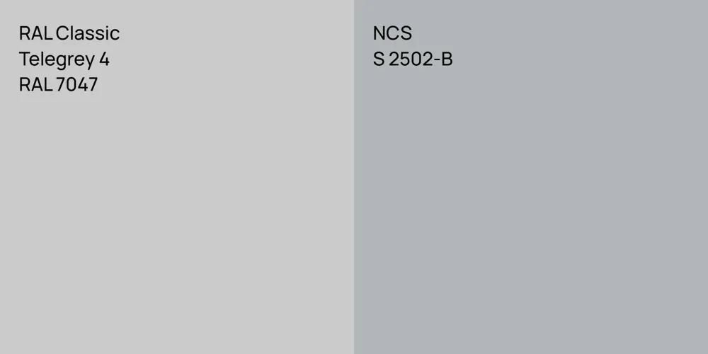 Despite their differences, both colors share a similar value, RAL Classic RAL 7047 radiating a lighter essence compared to S 2502-B.