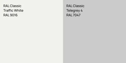 RAL Classic RAL 9016 and RAL 7042 differ significantly in saturation. RAL Classic RAL 9016 is more saturated.