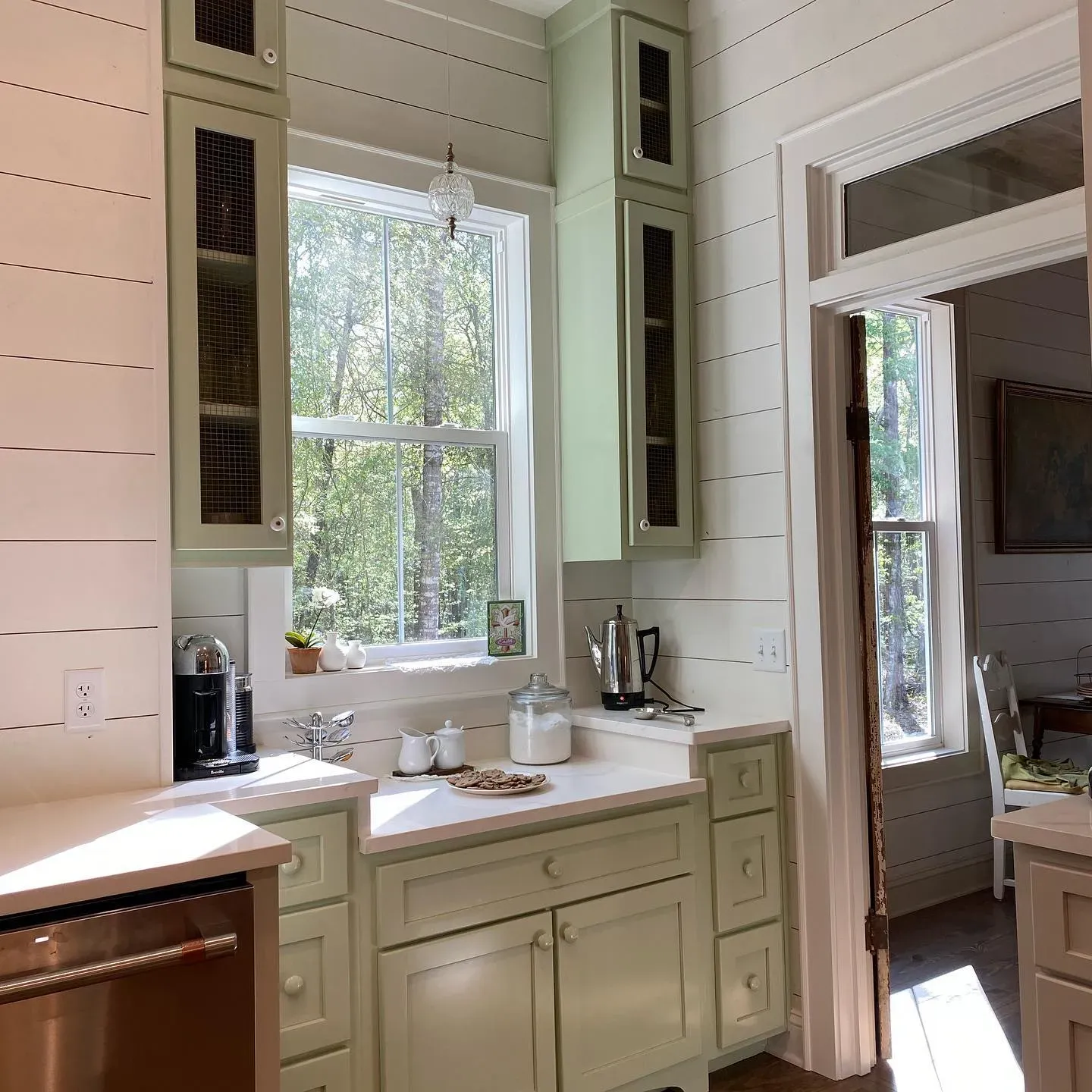 Benjamin Moore 464 Thornton Sage for kitchen cabinets